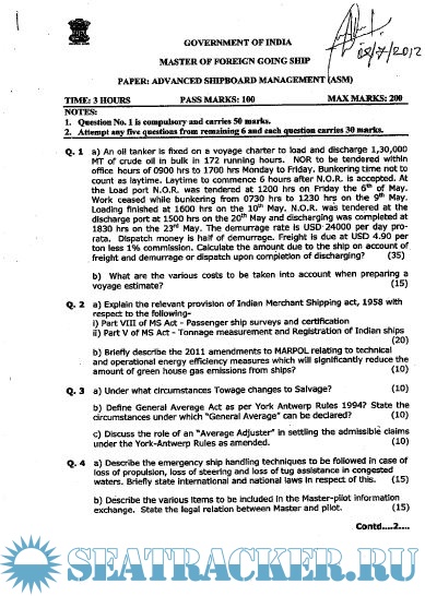 Master's examinations question paper sets for Mercantile Marine Department (MMD), India.