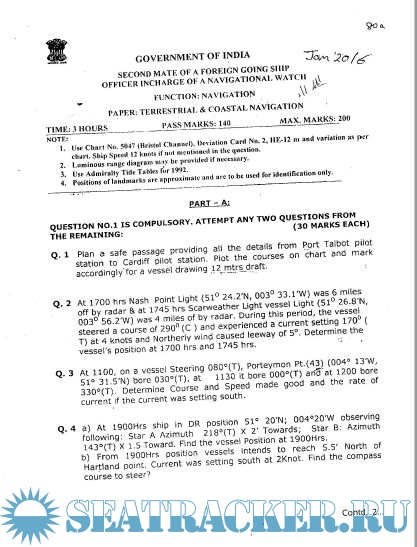 Description: 2nd Mate (F.G.) question paper sets for Mercantile Marine Department (MMD), India Exams.