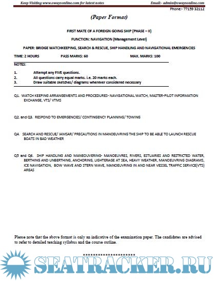 Description: Question paper set for Mercantile Marine Department (MMD), India Exams for Phase II - Chief Mate (F.G.).