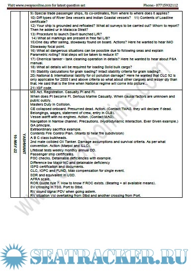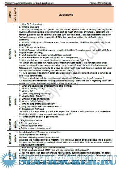 Orals Question Bank (February 2023) for ASM (Advanced Shipboard Management) / Master's Mercantile Marine Department (MMD), India Examinations