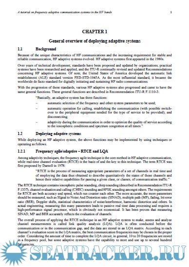 Year: 2022 Language: english Author: ITU Genre: Handbook ISBN: 978-92-61-37191-3 Format: PDF Quality: eBook Pages count: 26 Description: Because of the unique characteristics of HF communications and the increasing requirement for stable and reliable communication, HF adaptive systems evolved. HF adaptive systems first appeared in the 1980s. Over years of technical development, standards have been proposed and updated by organizations, practical systems have been researched and applied, and the ITU-R continually revised and updated Recommendations concerning HF adaptive systems. Of note, the United States of America developed the automatic link establishment (ALE) standard version FED-STD-1045A. As the most influential standard, it became the worldwide de facto standard for digitally initiating and sustaining HF radio communications. With the progression of these standards, various HF adaptive systems also progressed and came to have the same general functions. These general functions are described in Recommendation ITU-R F.1110-3: “Basically, an adaptive system has three functions: – automatic selection of the frequency and other system parameters to be used; – automatic operation for calling, establishing the communication (with possible switchover to the peripheral equipment needed for the type of service to be provided), and disconnecting; – adaptivity during the communication in order to optimize the quality of service according to the ionospheric conditions and spectrum congestion at all times.”