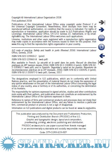 Year: 2018 Language: english Author: ILO Genre: Handbook Publisher: International Labour Office Edition: Revised 2016 ISBN: 978-922-129960-8 Format: PDF Quality: eBook Pages count: 526 Description: The revised 2016 edition of the ILO Code of practice on safety and health in ports was adopted by a Meeting of Experts held in Geneva from 21 to 30 November 2016, in accordance with a Governing Body decision at its 323rd Session (March 2015). The meeting was attended by 24 experts and their advisers – eight experts nominated by the Governments of Brazil, China, Germany, Kenya, Republic of Korea, the Netherlands, Nigeria and the United States; eight nominated by the Employers’ group of the Governing Body; and eight nominated by the Workers’ group of the Governing Body. Expert observers from other governments, and observers from intergovernmental and non-governmental organizations, also attended the meeting. The text revises and updates the 2005 edition of: Ilo code of practice safety and health in ports, which had replaced two former ILO publications: Guide to safety and health in dock work (1976) and Safety and health in dock work, An ILO code of practice (second edition, 1977). This code of practice is not a legally binding instrument. It is not intended to replace national laws and regulations or to affect the rights of workers provided by ILO instruments. It is designed to provide practical guidance to governments, ILO constituents and all those responsible for or involved in the management, operation, maintenance and development of ports. It is hoped that this code will help to raise the profile of safety and health issues in ports in all parts of the world, and contribute to the health, morale and well-being of port workers.
