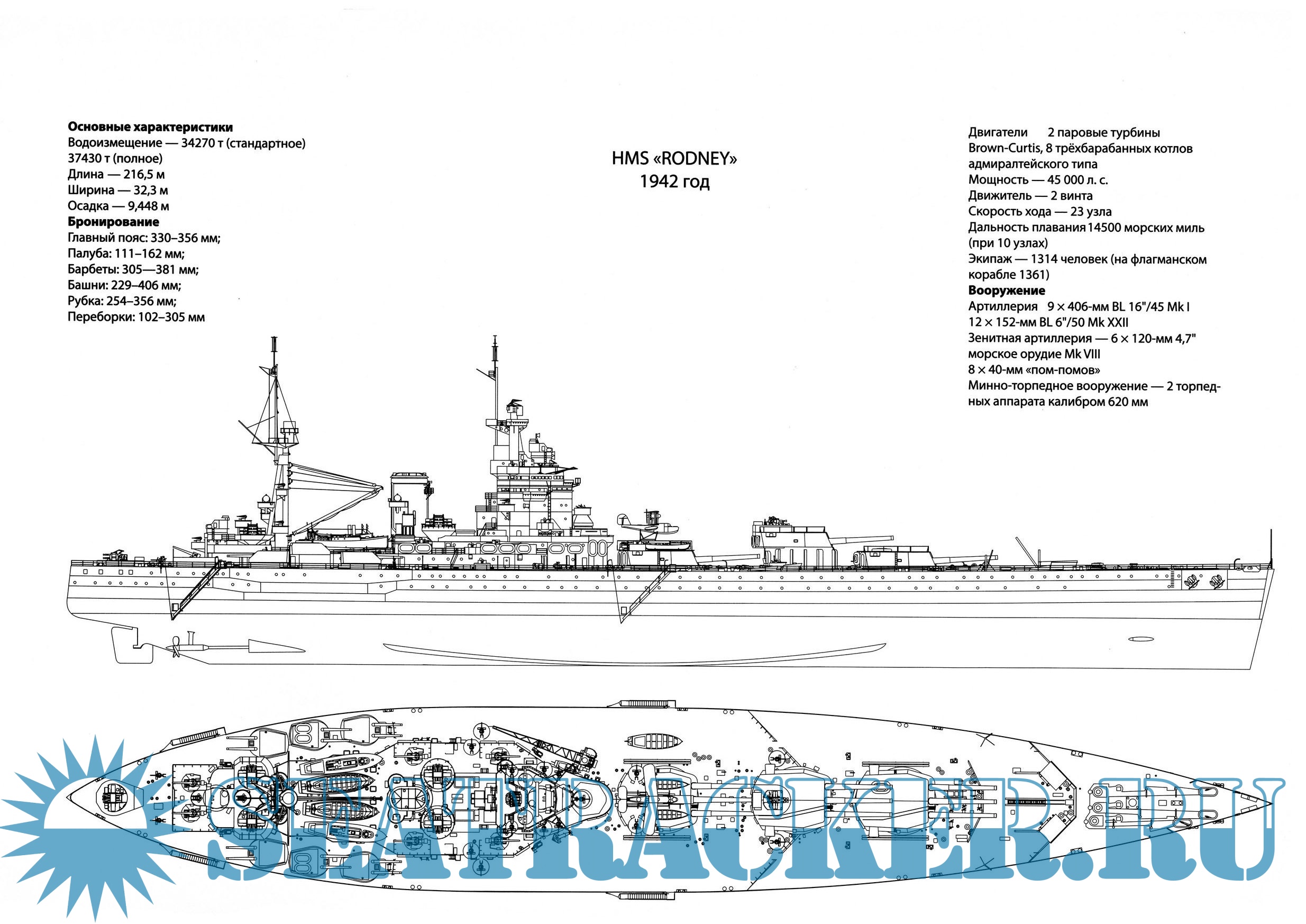 Описание: HMS Rodney (Корабль Его Величества «Родни») — британский линкор типа «Нельсон». Назван в честь адмирала Джорджа Родни, носил прозвище «Роднол». Девизом его являлась латинская фраза «Non Generant Aquilae Columbas» (с лат. — «От орлов не родятся голуби»). Носил бортовой номер 29. Нёс службу в Средиземноморье и Атлантике в годы Второй мировой войны, участвовал в потоплении линкора «Бисмарк». Разобран на металл в 1948 году.