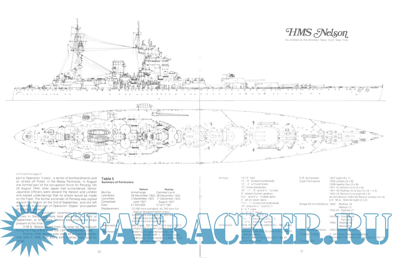 Year: 1979 Language: english Author: Alan Raven and John Roberts Genre: History Publisher: RSV Publications Edition: Mano' War 3 Format: PDF Quality: Scanned pages Pages count: 50 Description: As you read through "Rodney & Nelson," I hope you agree with us that it maintains the standards we've set with previous titles in the series. You'll note, however, that the "balance" of the book is somewhat different from our previous issues. For one, there is far more text. Further, we have included an extensive section on the wartime service of the two vessels. There are also considerably more on-board photos. These differences in presentation reflect several factors we have to contend with. First, of course, is the availability of information: For reasons now lost to posterity, certain ships—or indeed entire classes of ships, were simply not photographed very much. Similarly, textual correspondence regarding many interesting ships is sadly incomplete—while in other cases there are simply reams of memos, notes, orders, etc. available on an otherwise obscure vessel of little interest to anyone. Another factor to consider is the type of ship class we are covering. It can be appreciated that we can "zero in" on a two ship class such as Rodney & Nelson to a much finer degree than on a destroyer class such as the V & W's, where any number of vessels were doing all sorts of things at any given point in time. Lastly are the ships themselves; some had a fascinating series of developmental modifications, others all manner of teething troubles, still others noteworthy wartime exploits and so on. All of the above-mentioned factors come into play when designing the detail format of each title.
