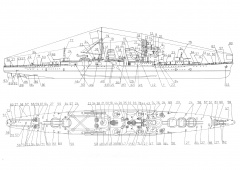Описание: 27 листов цветных выкроек и инструкций для изготовления бумажной модели тяжёлого крейсера IJN NACHI в масштабе 1:200