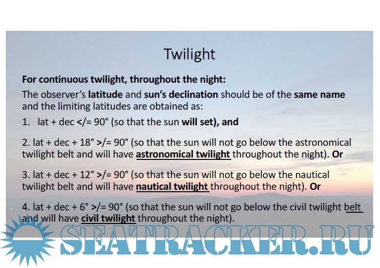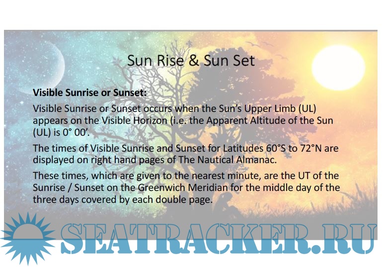 Explanation for Celestial Navigation Part C problems for examination purpose related to Sunrise, Sunset and Twilight.