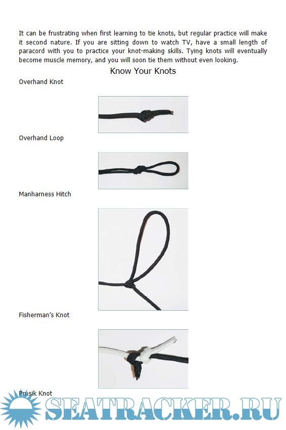 Step-by-step instructions to make a paracord bracelet, quick deploy bundle, pace count beads, water filter, and much more