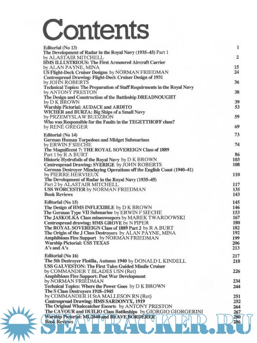 Year: 1980 Language: english Author: Roberts J. Genre: Periodical (magazine) Publisher: Naval Institute Press ISBN: 0870219790 Format: PDF Quality: Scanned pages Pages count: 291 Description: This book has articles about the following topics British development of radar in 1935-45 (in 2 parts) HMS Illustrious (armored aircraft carrier) US proposal for a flight-deck cruiser in the 1931 Design and construction of HMS Dreadnought Audace and Ardito (Italian destroyers) Wicher and Burza (Polish destroyers) Tegetthoff (design faults in Austrian dreadnought) German human torpedoes and midget submarines Royal Sovereign class pre-dreadnought (in 2 parts) early British hydrofoils German destroyer minelaying operations in 1940-41 USS Worcester (light AA cruiser) HMS Inflexible (ironclad) Type VII (German U-boat) J Class (British destroyer) US amphibious fire support ships (2 parts) USS Texas (photos of dreadnought) British 5th Destroyer Flotilla in Autumn 1940 USS Galveston (missile cruiser) S class (British Destroyer) British whale catcher escort ships Cavour and Duilio (Italian destroyers)