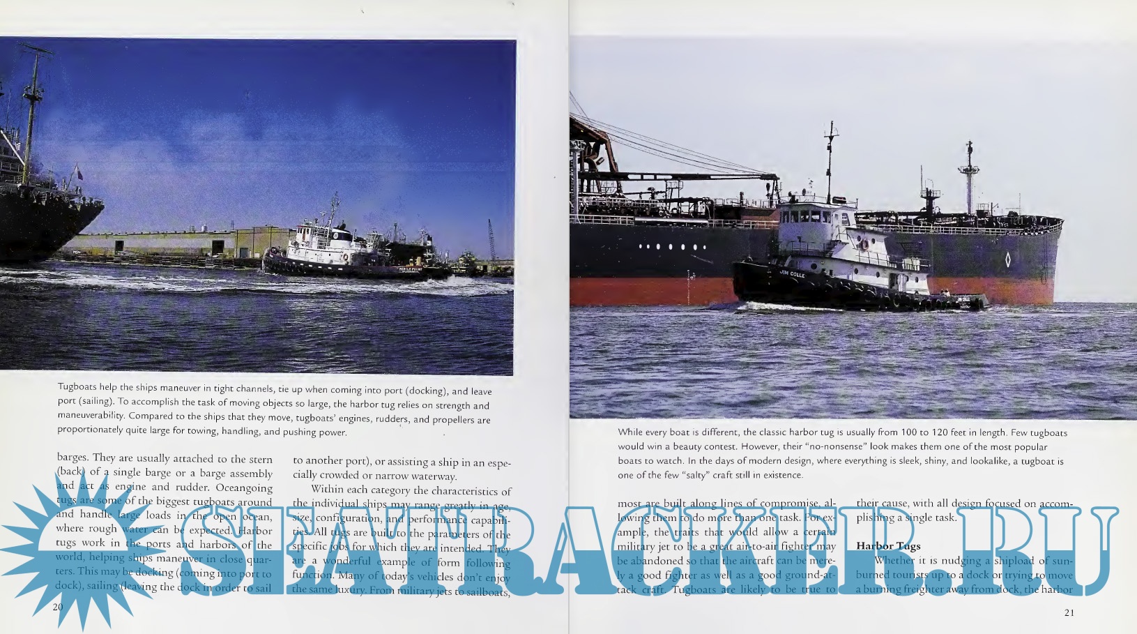 Year: 2000 Language: english Author: William Burt Genre: History Publisher: MBI Publishing Company Format: PDF Quality: Scanned pages Pages count: 180 Description: Tugboats are the hardest working vessels in the shipping business, safely guiding freighters several times their weight and size to dock and back out to sea. This all-color salute to everyone's favorite little ship examines "tugs" today at ports around the world. In addition to depicting tugboats at work, the book explains the various tasks with which the boats are charged, the work of their crews, and the engines and designs that allow these relatively small vessels to tow incredible tonnage. The author also explains how older tugboats are overhauled for continued service and how manufacturers are finding new markets by revamping decommissioned tugboats-and even building brand new ones-for use as private cruisers. In addition to being a NASCAR journalist and the author of three previous MBI books on the subject-Behind the Scenes of NASCAR Racing, Stock Car Race Fan's Reference Guide and NASCAR Transporters-Bill Burt is a longtime tugboat fan just now getting the opportunity to indulge his passion in book form.