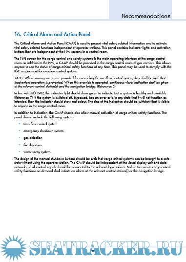 Description: This publication recommends the implementation of alarm management philosophies for cargo alarm systems on gas carriers.