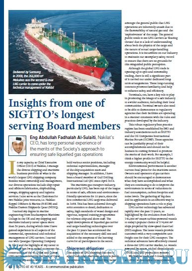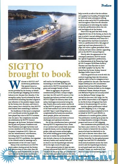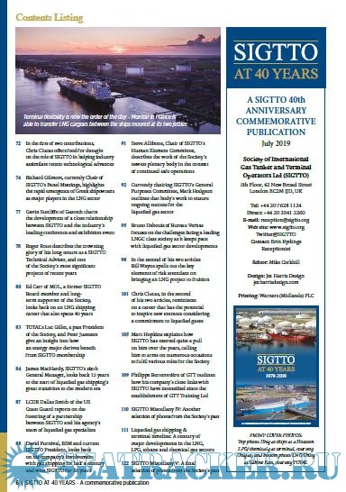 Additional info: The Society of International Gas Tanker and Terminal Operators (SIGTTO) is a non-profit making organisation dedicated to protect and promote the mutual interests of its members in matters related to the safe and reliable operation of gas tankers and terminals within a sound environment. The Society was founded in 1979 and was granted consultative status at the International Maritime Organization in November 1983.