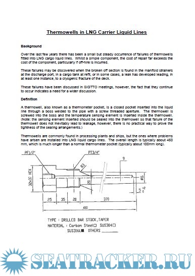This document was produced in response to a number of failures of thermowells fitted into LNG cargo liquid lines. This document provides some further guidance and information on the subject.