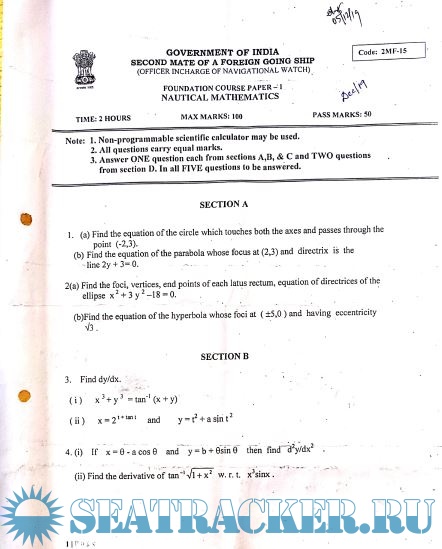Question Paper Set for Second Mate (Foundation Course) Mercantile Marine Department (MMD), India Examinations