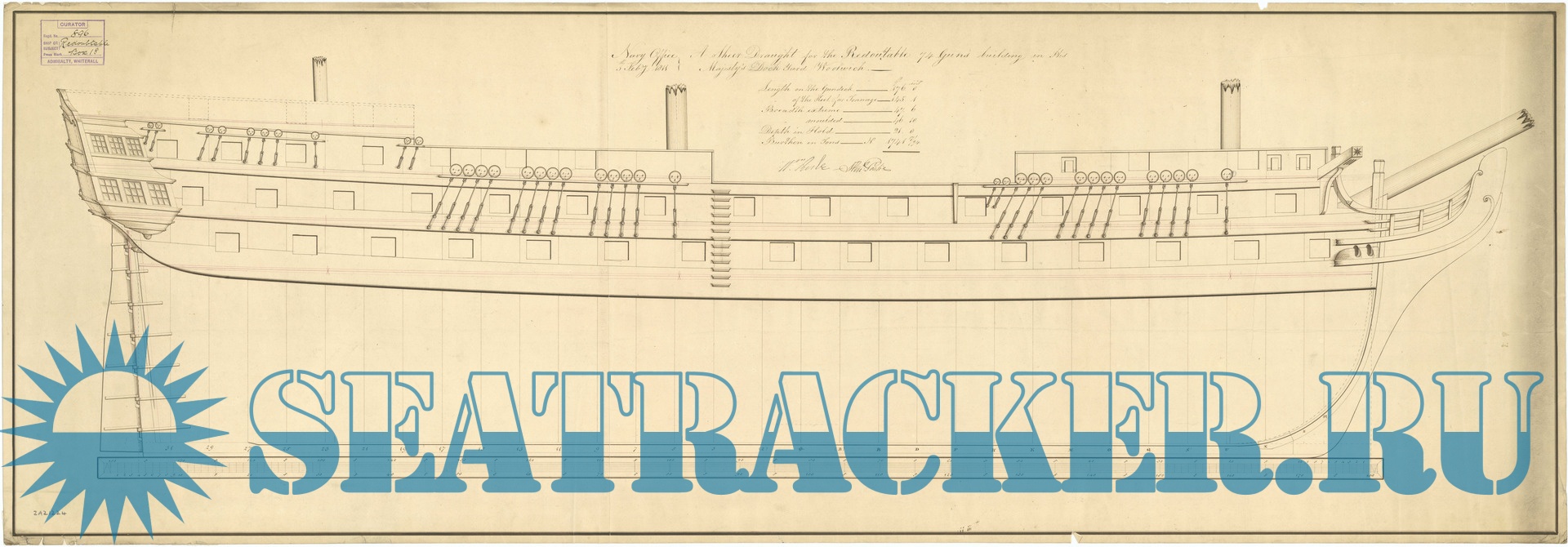 Описание: 8 листов архивных чертежей HMS Redoubtable (1815)