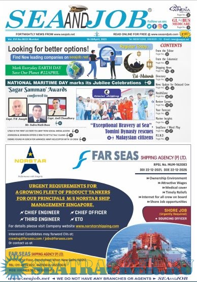 Description: The Sea and Job magazine launched in May 2007, was the second venture of Sea Line Group succeeding 'seajob.net' bringing the much renowned essence to the Group, the Sea and Job Magazine quickly gained popularity, becoming the No. 1 Shipping Magazine that came to be widely circulated all over India. Sea and Job over the years has evolved as the most trusted, ethical, objective and read maritime publication that possesses a large database of subscribers from various verticals in the industry.The magazine provides informative and interesting articles covering not just the shipping world but also the world outside it.Sea and Job is also a medium for the shipping/ manning companies to advertise marine jobs and also to promote their organization by publicizing internal activities like seminars, sports events and parties.Some notable endeavors of the magazine include the Know Your Recruiter Column, the Sailing Episodes Column and the Marine Insights section. The consistent efforts and the dedication to provide extraordinary services to the industry has resulted in the magnifying popularity and patronage of Sea and Job.