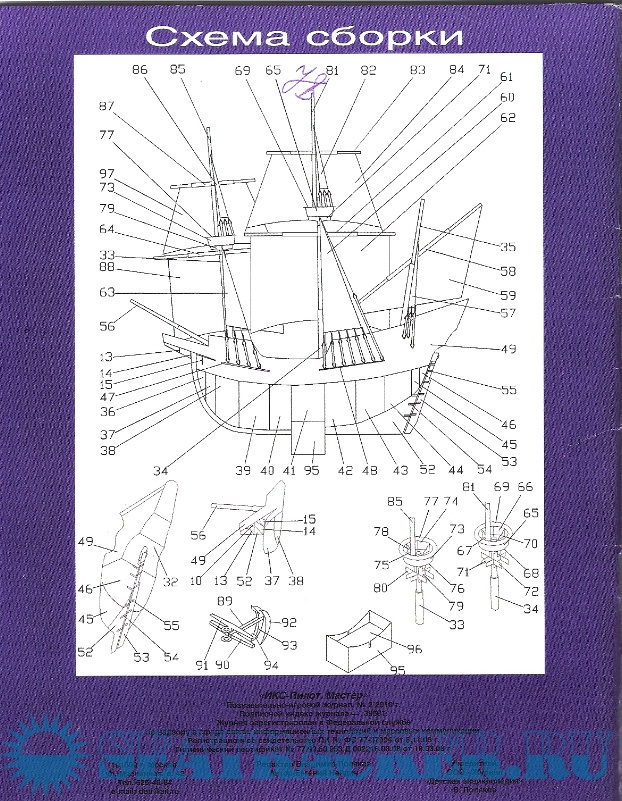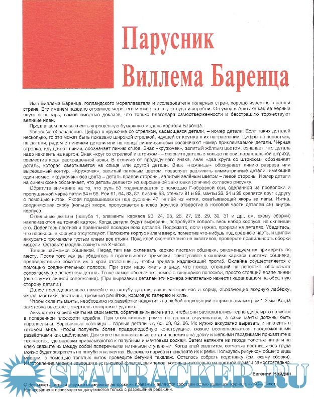 12 листов цветных выкроек и инструкций для создания бумажной модели парусника Виллема БаренцаСкриншоты