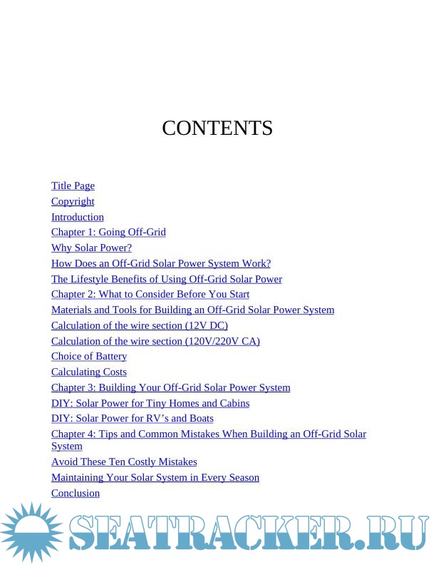 Year: 2020 Language: english Author: Ketch A. Genre: Technical book Publisher: Independently published ISBN: 979-8674988236 Format: PDF Quality: Scanned pages Pages count: 77 Description: If you want to make easy your solar system for RVs, Vans, Cabins, Boats and Tiny Homes, then Keep Reading! Your desire could be to build your solar system in your small house far from the city to be autonomous, or to reduce the cost of your bill in the house where you live, or simply to have a free energy source to power your Van. or your boat when you are on vacation. This desire may seem difficult to fulfill due to the lack of some electrical skills, or you have already built a solar system and it does not work or does not perform as much as you would have thought. There are many questions you may ask yourself, such as: How to install my solar system? What do I have to buy to make it? What are the calculations to do for correct sizing? What are the most common mistakes? In this book I will answer all these questions and many more, plus I will give you the right indications for: ✓ Understand how a solar system works and its characteristics ✓ Correctly size the fundamental parts of the system ✓ Choose the right components to make it ✓ Solve the most common mistakes that are made ✓ Methods to make your solar system last longer ✓ Build the system following the specific schemes for the various applications This book is perfect for those who want their own solar system for your Tiny Home, your Van or boat and do not know where to start or want to deepen some topics to be able to size it in a simple and understandable way. This is a book both practical and theoretical to make you understand what are the fundamental technical aspects and allow you to apply them by explaining how to do it.