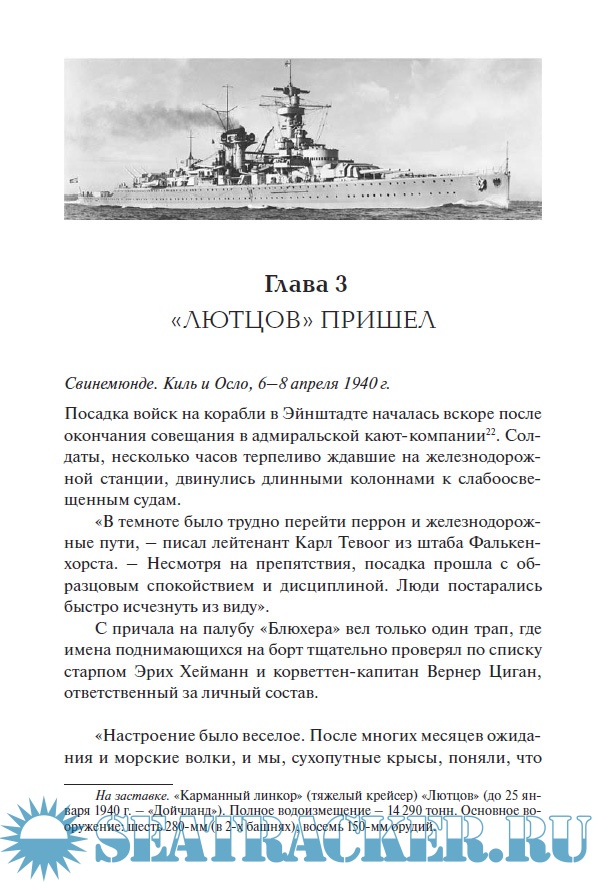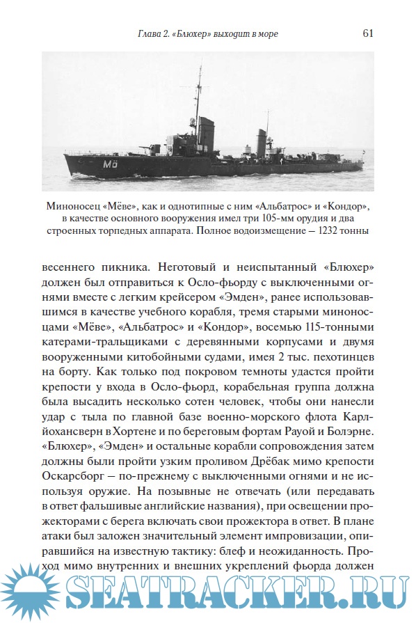 Описание: Внезапное нападение нацистской Германии на Норвегию 9 апреля 1940 г. («Операция Везерюбунг») стало важным этапом начального периода Второй мировой войны. Ключевую роль в реализации плана вторжения отводилась десантной Группе 5 во главе с новейшим немецким крейсером «Блюхер», которая должна была захватить столицу страны Осло. Нейтральная Норвегия не была готова сопротивляться, правительство страны не реагировало на сообщения о готовящемся нападении. В этих условиях верность долгу и смелость проявил комендант крепости Оскарсборг полковник Биргер Эриксен, отдавший приказ открыть огонь из устаревших орудий по мощным кораблям вторжения. Крейсер «Блюхер» был потоплен, а гитлеровский план захвата короля, правительства и золотого запаса Норвегии сорван. Этому драматическому поединку крепости и крейсера, столкновению характеров защитников Оскарсборга и захватчиков, посвящена книга норвежского историка А. Якобсена.