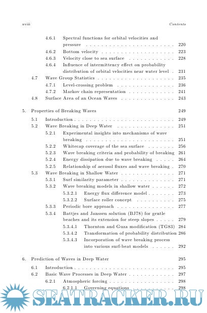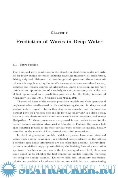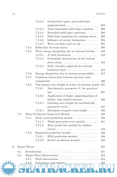 Year: 2007 Language: english Author: Massel S.R. Genre: Technical book Publisher: World Scientific Publishing Co Edition: 2nd ISBN: 9814460117 Format: PDF Quality: Scanned pages Pages count: 794 Description: New Edition: Ocean Surface Waves: Their Physics and Prediction (3rd Edition)The book is an extended and updated edition of the book published in 1996 under the same title (World Scientific, ISBN 9810216866). It contains a very comprehensive and extensive study on surface ocean waves induced by wind, earthquakes and possible landslides and asteroids impacts. The basic mathematical principles, physical description of the observed phenomena, practical forecasting techniques of the various wave parameters and extended application in ocean and coastal engineering, are discussed from the stochastic point of view.All chapters were completely rewritten and supplemented with many new discoveries which were published since the first edition in 1996. In particular, new chapters are added on very interesting and contemporary topics such as: wave breaking mechanisms in deep- and shallow water, freak waves, tsunami, water circulation in porous sea bottom induced by surface waves, and waves propagation through mangrove forests.In terms of numerical modeling, the state of the art of the modern methodology of wave prediction models WAM and SWAN, as well as of the high sophisticated satellite methods of waves measurement and modern methods of signal processing, including wavelets approach and Hilbert Transform approach are presented. The book is supplemented with an extended list of relevant and extended, contemporary bibliography, subject index and author index.