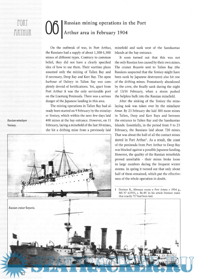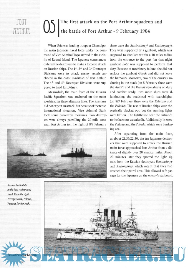 Year: 2009 Language: english Author: Piotr Olender Genre: History Publisher: Stratus Edition: Maritime Series 3101 Format: PDF Quality: Scanned pages Pages count: 154 Description: Book describes technical aspects of the Russo-Japanese Naval War. Contains descriptions of all involved ships, Russian and Japanese ones. Maps, photos.