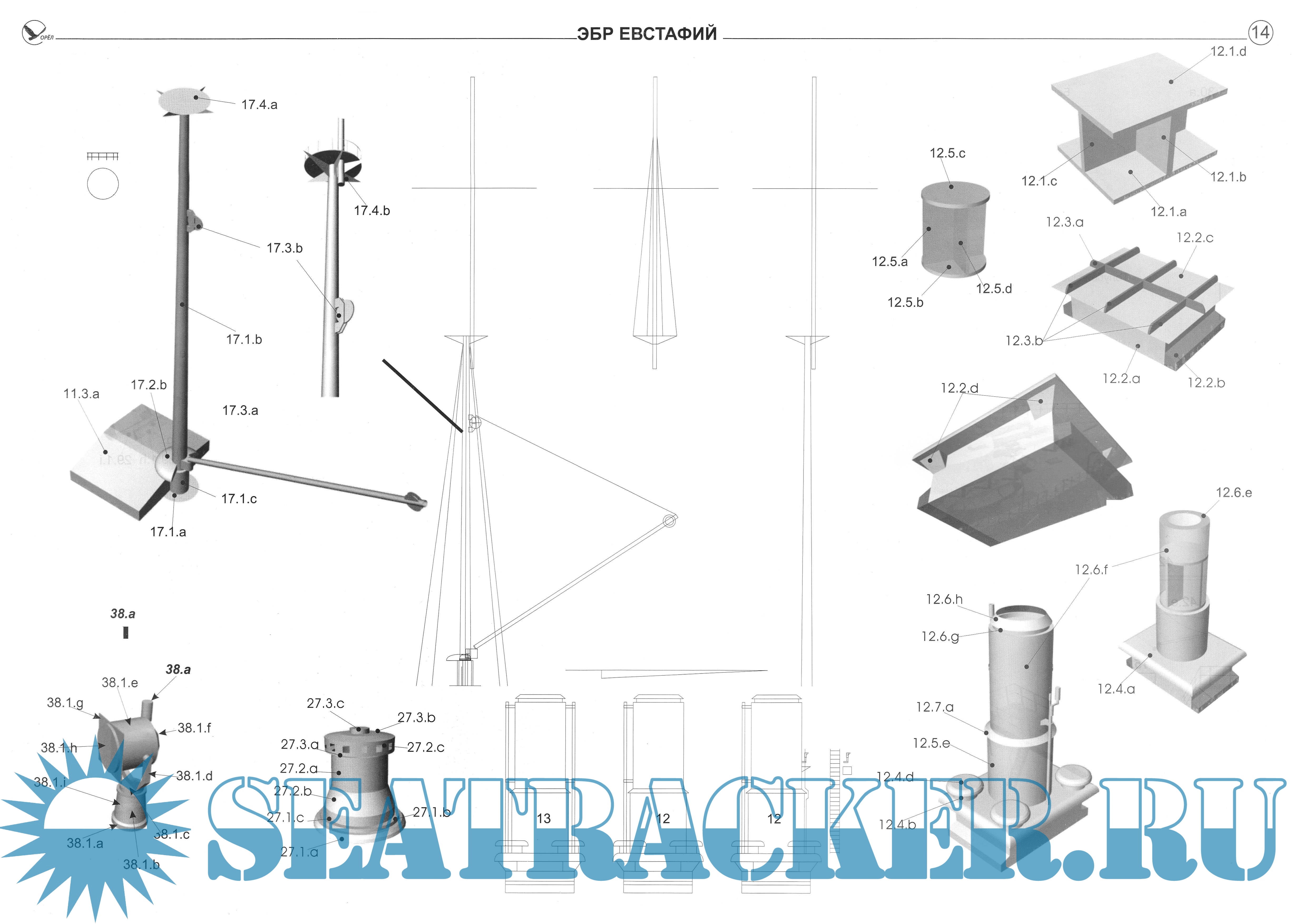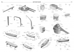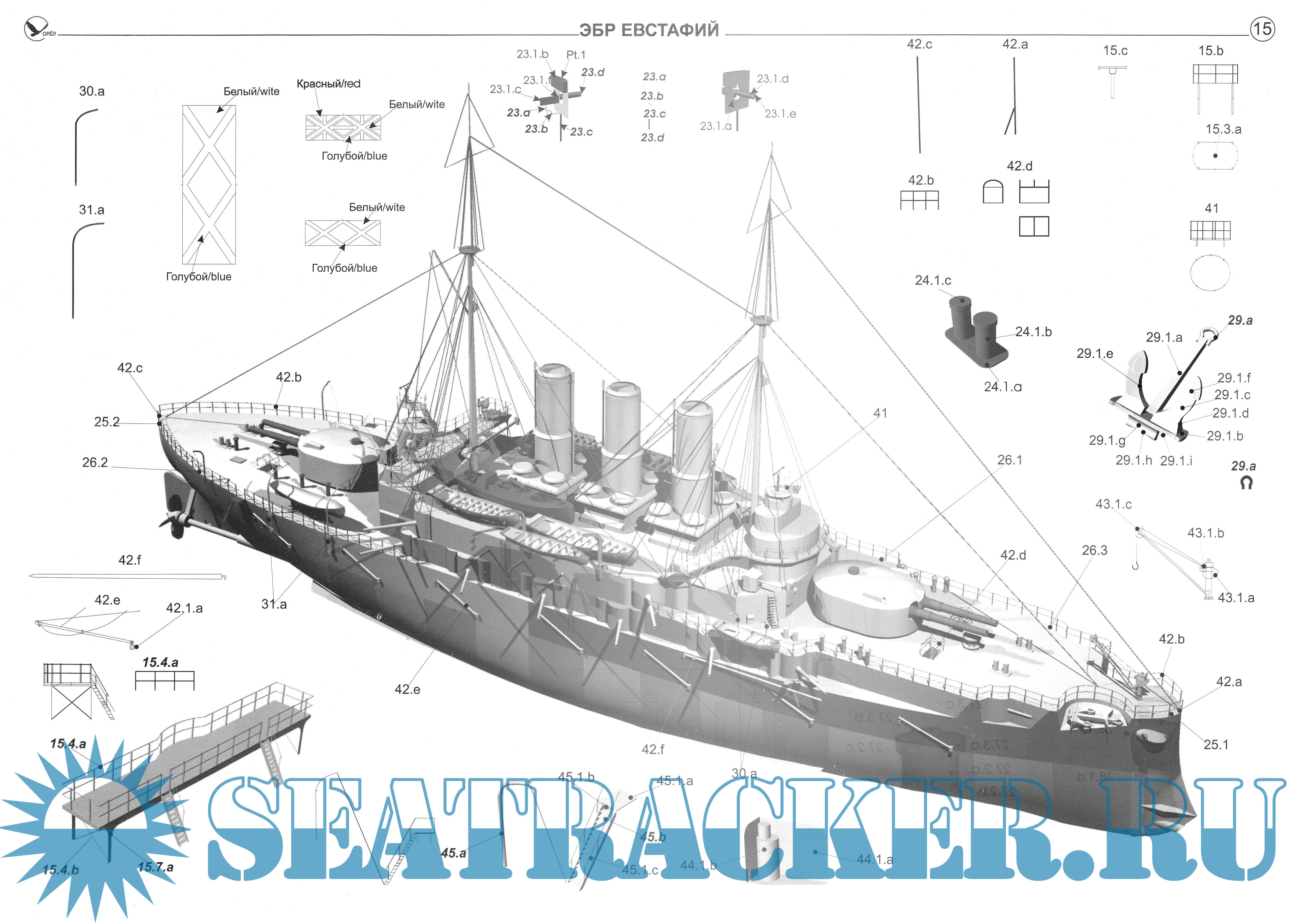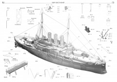 Описание: 19 листов цветных выкроек и инструкций для изготовления бумажной модели в масштабе 1:200 линейного корабля "Евстафий" по состоянию на 1911 год