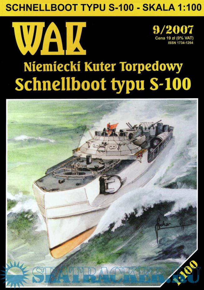 12 листов цветных выкроек и инструкций для изготовления бумажной модели немецкого торпедного катера Schnellboot typu S-100 в масштабе 1:100
