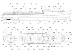 Описание: 12 листов цветных выкроек и инструкций для изготовления бумажной модели немецкого торпедного катера Schnellboot typu S-100 в масштабе 1:100