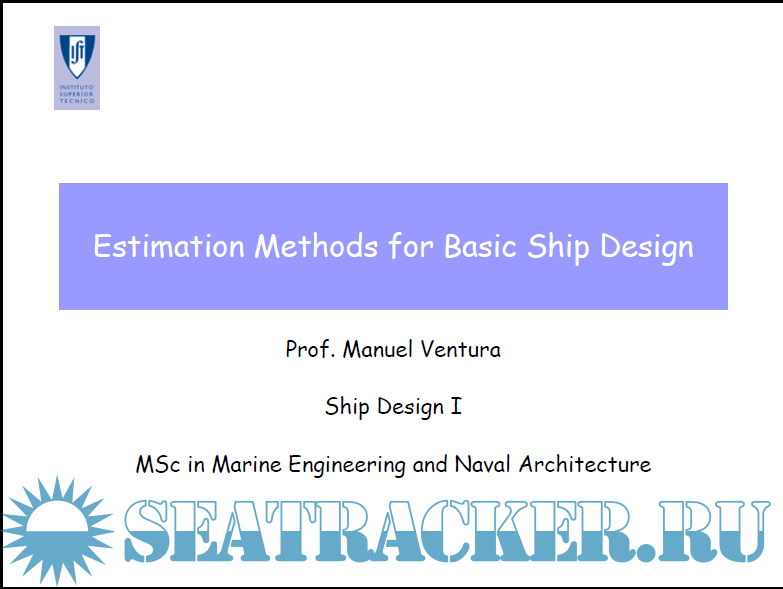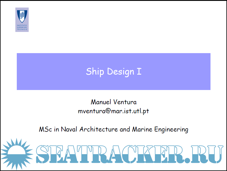 Year: N/A Language: english Author: Manuel F. Ventura Genre: Lectures Format: PDF Quality: eBook Pages count: 629 Description: Ship Design I Objective Preliminary design of various types of ships, considering commercial demands and market, harbour, operational theatre restriction, regulations, in a way to formulate a technical and economical optimization. Use of statistical and empirical elements to search the best ship design and to define its principal characteristics. Overview Ship design methodology. Dimensioning of ships. Optimization methods. Measures of merit. Design restrictions. Rules, regulations and conventions and their impact on the design. Estimation methods for ship design: lightship weight, volumes, hydrostatic characteristics and intact stability, propulsion power, costs. Hull form development. Basic method, parent ship and systematic series. Evaluation Determination of the required main characteristics of a ship from a specific maritime transportation problem. Report and oral presentation of the work done. Additional info: Not a full version, some parts are not available.