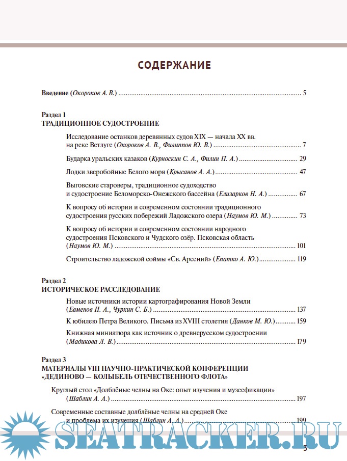 В издании рассматриваются вопросы, связанные с историей, развитием и современным состоянием традиционных судостроительных практик на реке Ветлуге (Нижегородская обл.), Беломорско-Онежского бассейна, Ладожского, Псковского и Чудского озер (Псковская обл.), в районе среднего и нижнего течения реки Урал, а также в районе средней Оки.