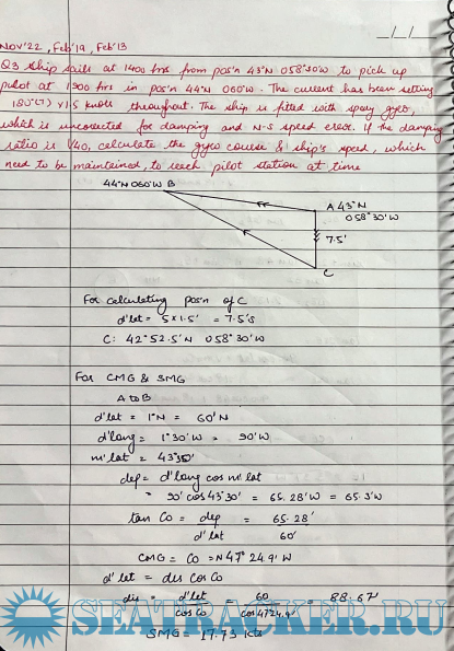 Additional info: Hand Written Gyro - Solved Numericals (2023-2012) from Past Question Papers of Mercantile Marine Department (MMD), India Examinations for Phase II (Chief Mate F.G.)