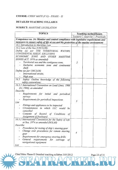 Year: 2012 Language: english Author: D.G. Shipping, India Format: JPEG Quality: Photo of pages Pages count: 92 Description: Syllabus for Chief Mate F.G. (Phase I & II) Mercantile Marine Department (MMD), India Examinations. Revised on 06.02.2012 in view of the 2010 Amendments to STCW Convention.