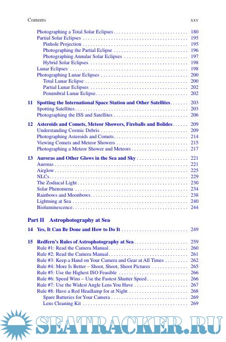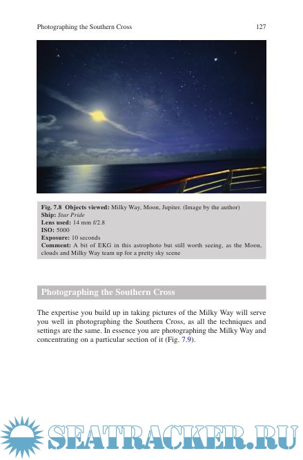 Part I is full of practical advice on what to pack, the best ways to enjoy the night sky from your cruise ship observatory, specific astronomical objects and events to look out for, and myriad other useful tips. Part II gives you a crash course on astrophotography at sea, teaching you the nitty-gritty details of taking pictures of the night sky. Proof that it can be done is provided by the many amazing color astrophotographs taken by the author while following the steps laid out in this book.