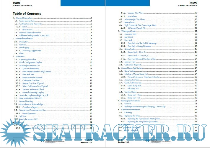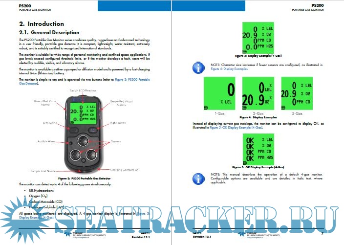 Description: This guide instructs gas detection personnel on the features and usage of the PS200 Portable Gas Monitor (or “the monitor”), including information on operation, configuration, maintenance, specifications and troubleshooting.