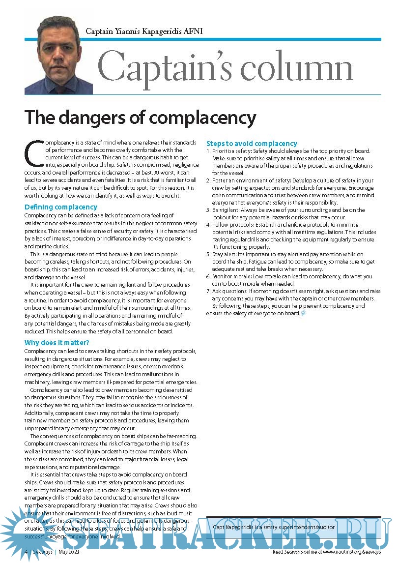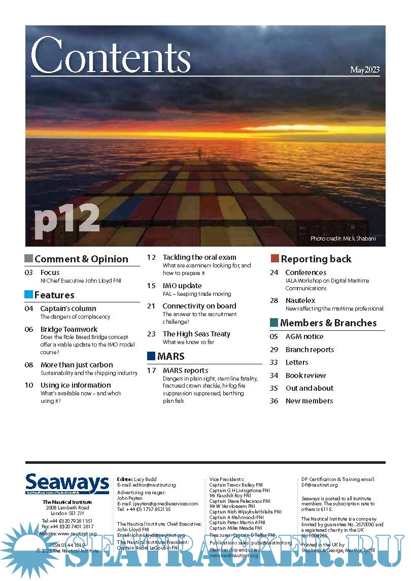 Year: 2023 Language: english Author: The Nautical Institute Genre: Periodical (magazine) Format: PDF Quality: eBook Pages count: 40 Description: Edition May, 2023 Seaways Recognised as one of the leading maritime journals, Seaways is sent out to all members monthly. It is the international journal of The Nautical Institute and has the most vibrant professional correspondence section to be found anywhere in the industry.
