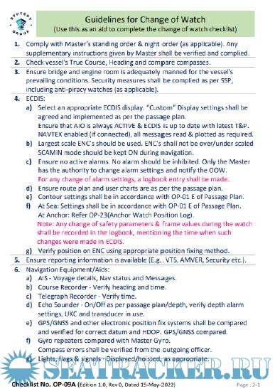 This Navigators Checklist Handbook is designed to cater safety of navigation in line with the company's Navigation Manual and applies to all Synergy managed vessels.