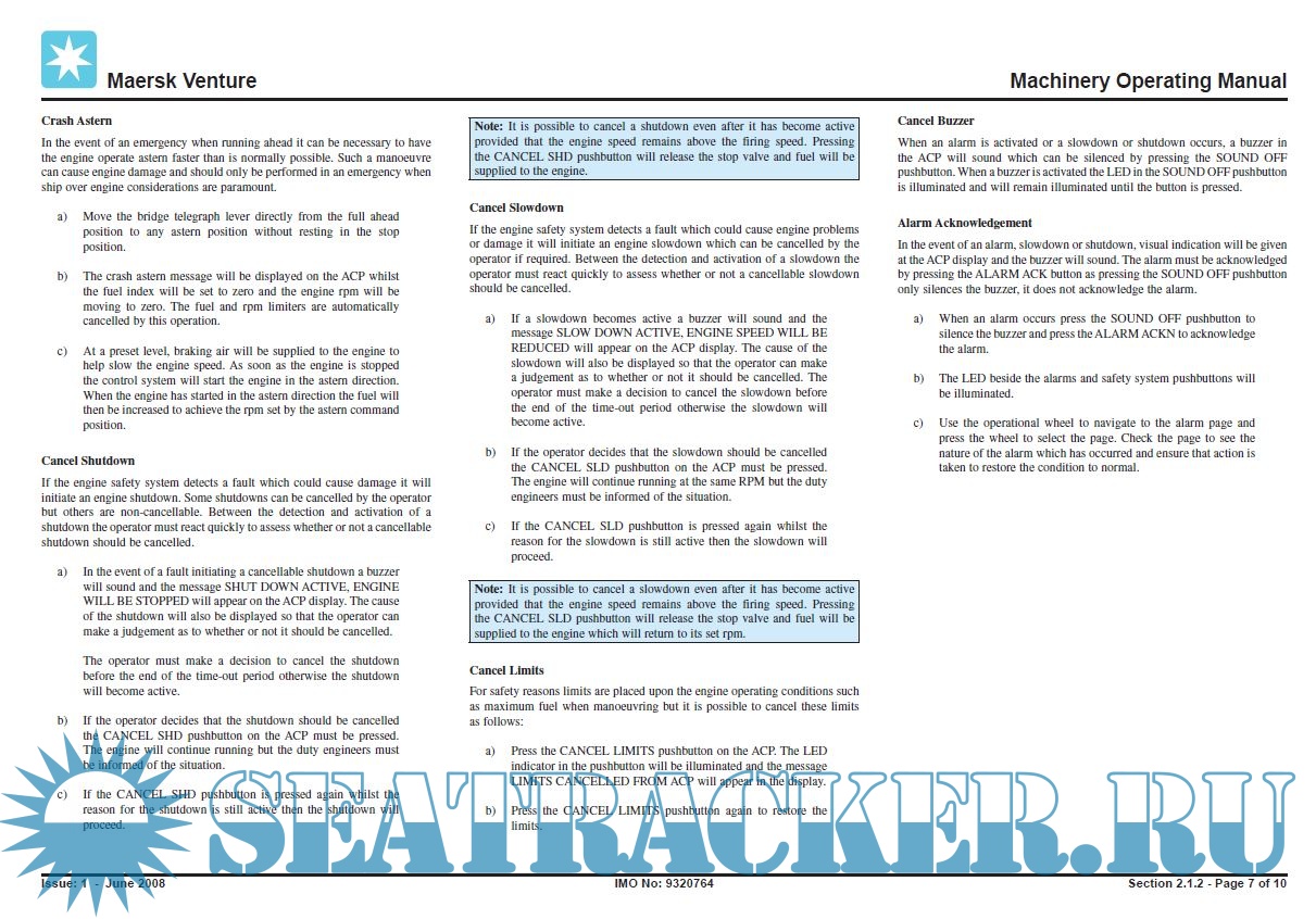Maersk Venture Operating Manuals