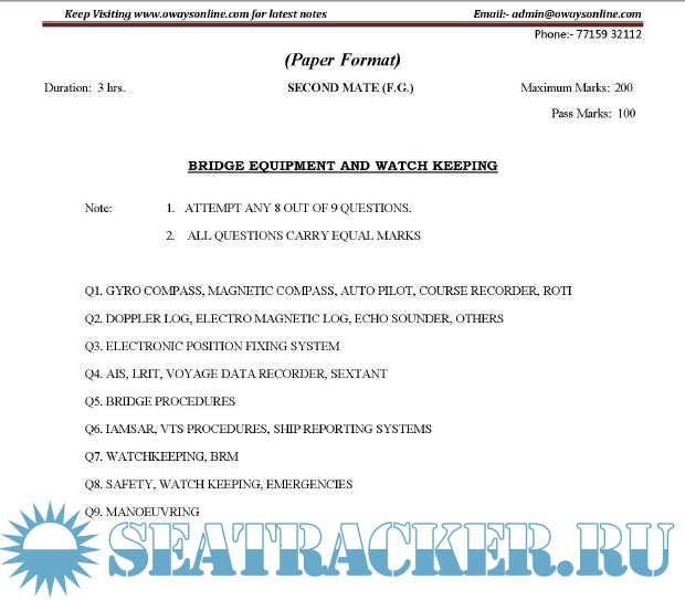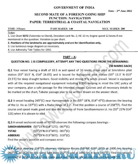 Question Paper Set (May 2023) for Second Mate (F.G.) Mercantile Marine Department (MMD), India Examinations