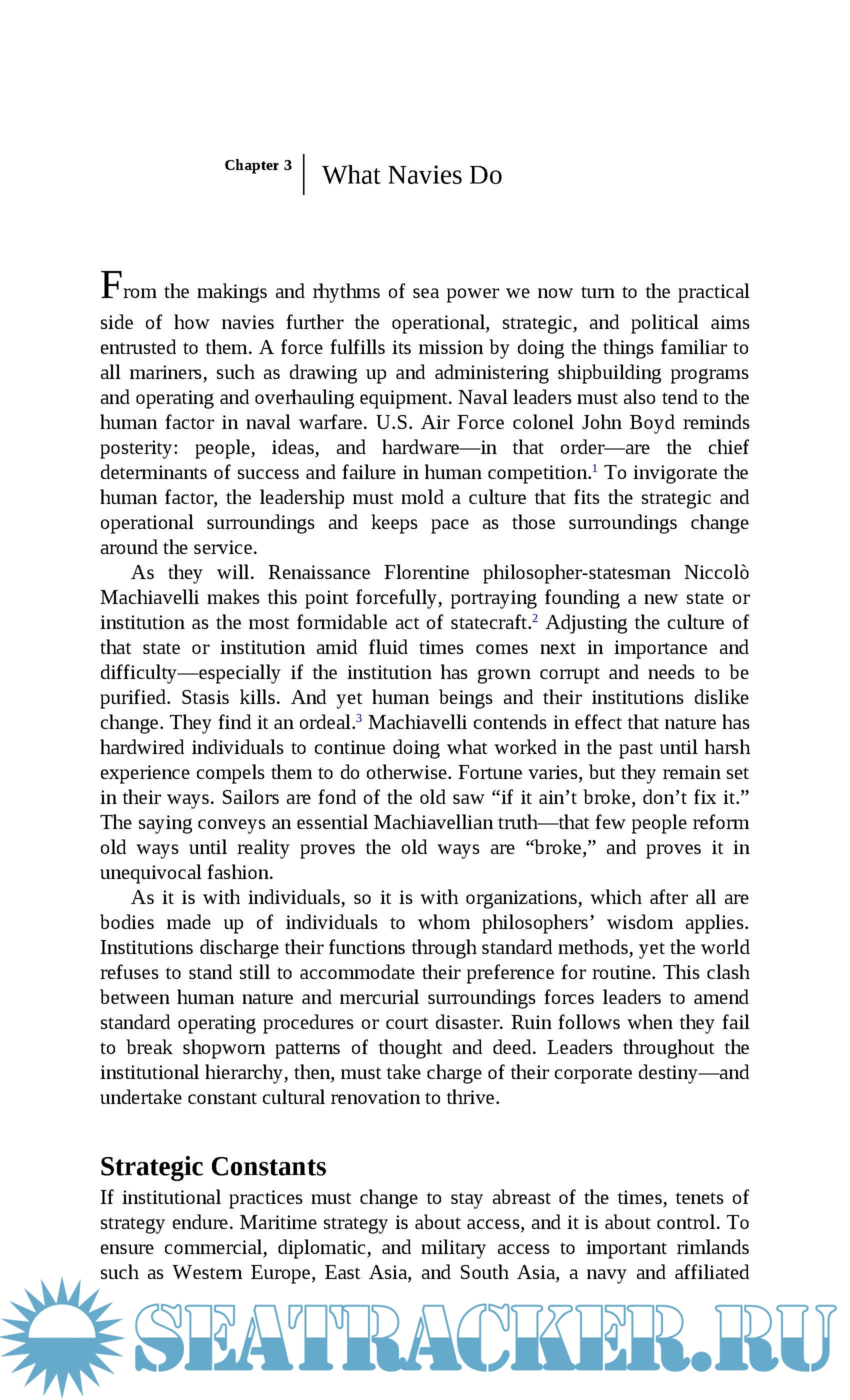By introducing the central ideas from the masters of maritime strategy Mahan, Corbett, and their kindred theorists and by doing so in