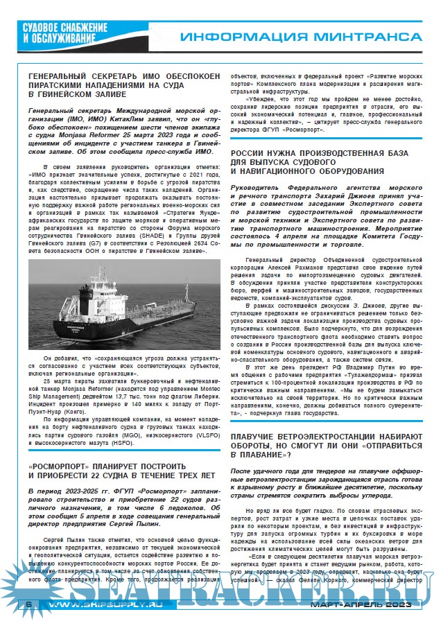 Судовое снабжение и обслуживание май-июнь 2023 - Батраков В.Ф. (главный редактор) [2023, PDF]