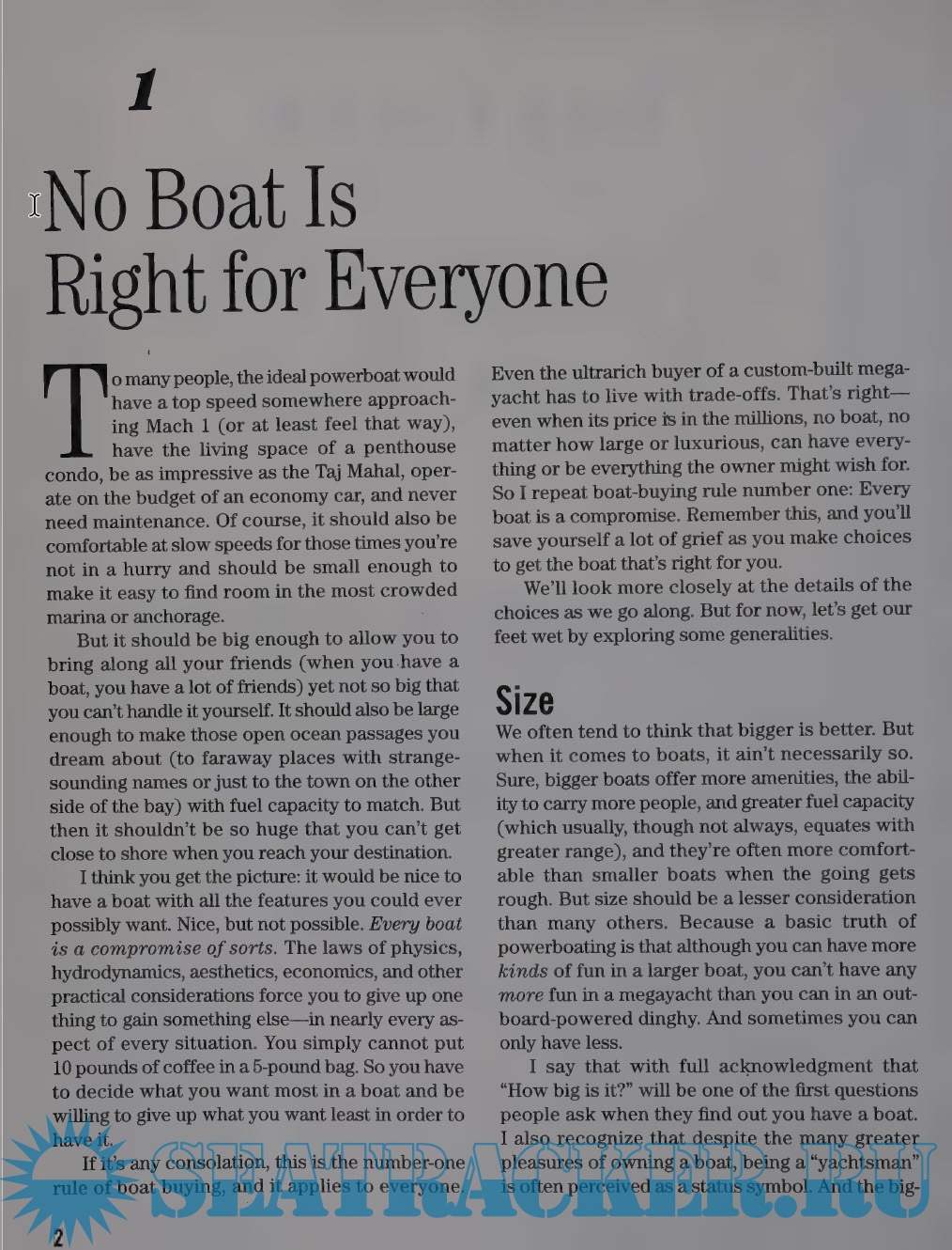 Year: 2005 Language: English Author: Bob Armstrong Genre: Practical guide Publisher: International Marine Edition: Third ISBN: 978-0071448994 Format: PDF Quality: Scanned pages Pages count: 292 Description: There’s nothing like the thrill of skimming over the waves at the helm of a fast powerboat. And the thrill is even greater when you’re driving the boat that’s right for you and handling it with skill and confidence. This third edition of Getting Started in Powerboating gives you all the information you need to select the boat of your dreams, maneuver it like a master, and understand the rules and conventions of powerboating. Thoroughly updated with new developments and technologies, this new edition of the bestselling guide in its field covers all powerboats―big and small; single-engine, twin-engine, outboard, and sterndrive; trailerable and nontrailerable. You’ll discover the difference between a planing hull and a displacement hull, learn to compensate for the effects of wind and current, and master high-speed techniques. Plus this third edition features new photographs that illustrate key techniques and maneuvering sequences, including turning, backing, docking, and more. Must-have information includes: The latest on four-stroke outboards Jack plates, jet drives, and bow thrusters Piloting and navigation basics Anchors and anchoring techniques An updated market survey of popular powerboats State licensing requirements