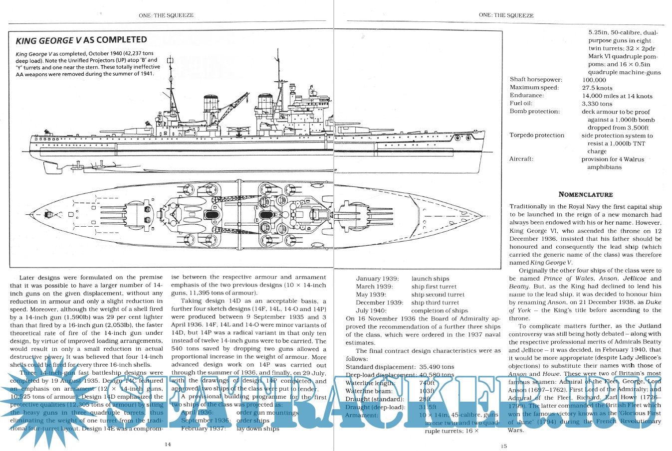 Year: 1992 Language: english Author: V.E. Tarrant Genre: History Format: PDF Quality: Scanned pages Pages count: 292 Description: They were some of the finest ships the Royal Navy ever built--the last of the great "floating villages" to see WWII action. Their achievements appear in dramatic photos of both battle action and close-up detail, along with exhaustive charts of technical specifications. The personality of each of the five ships comes through in sketches of many of the 1,500 officers and men, in more than six years of battle, in most sea theaters.