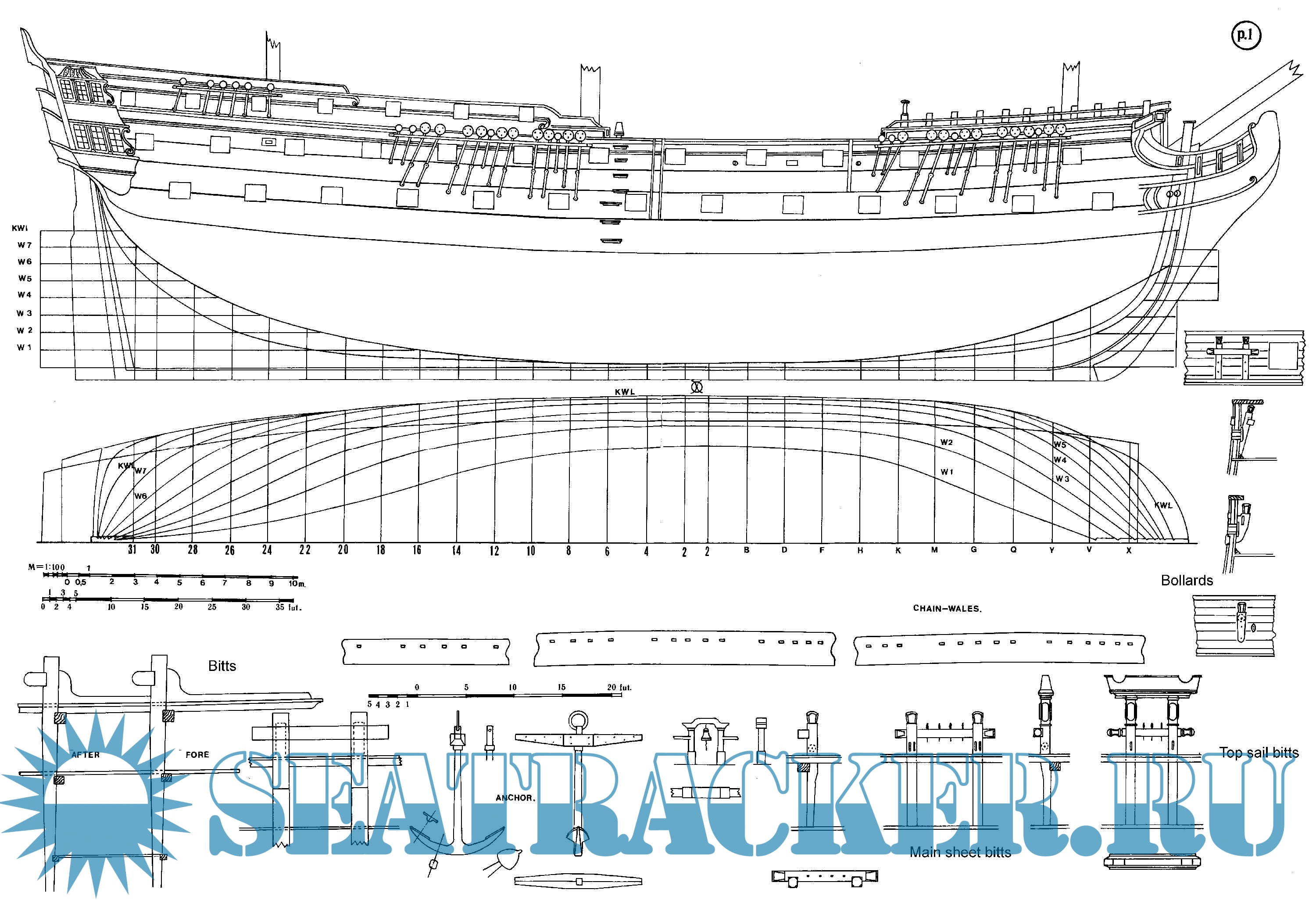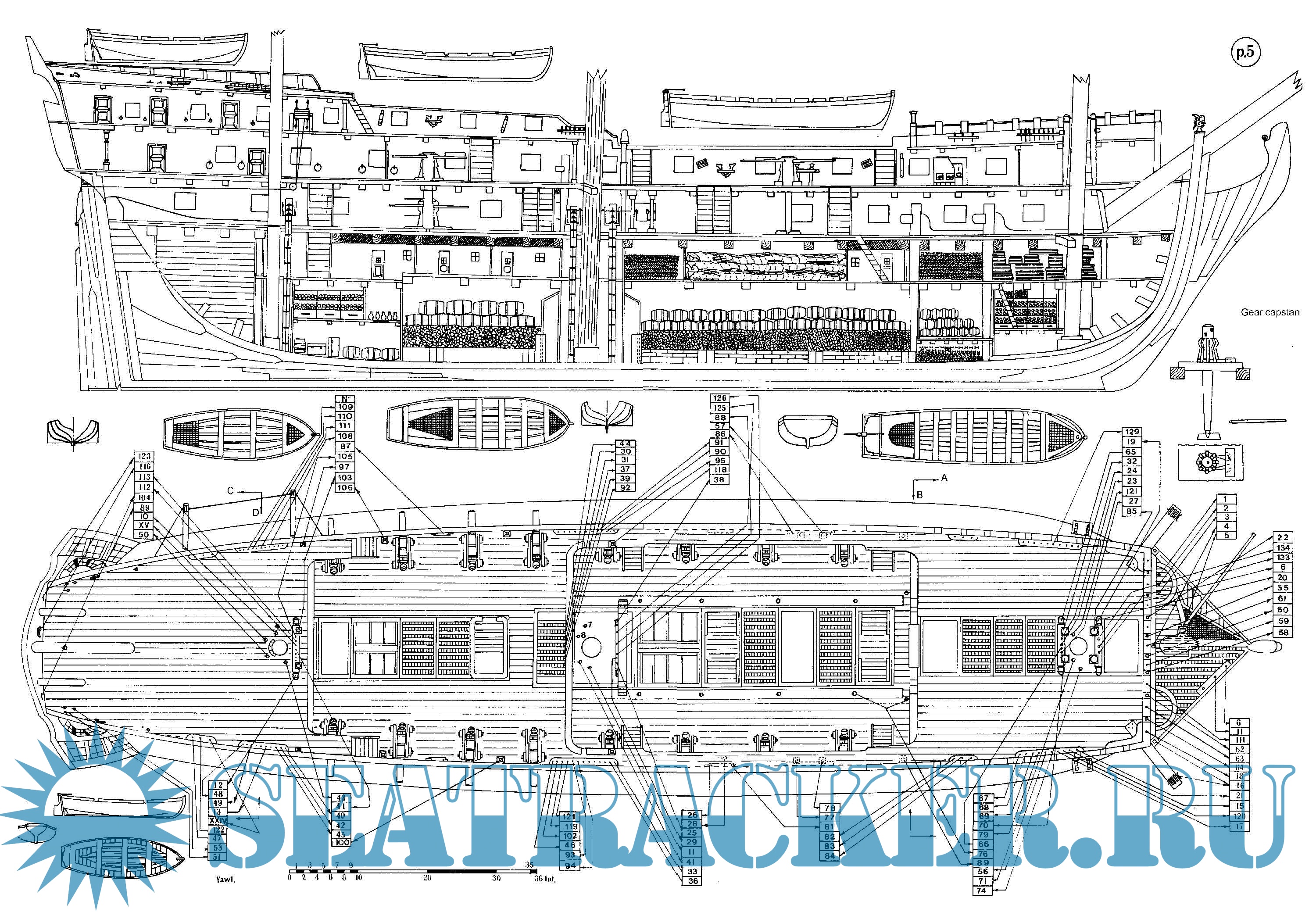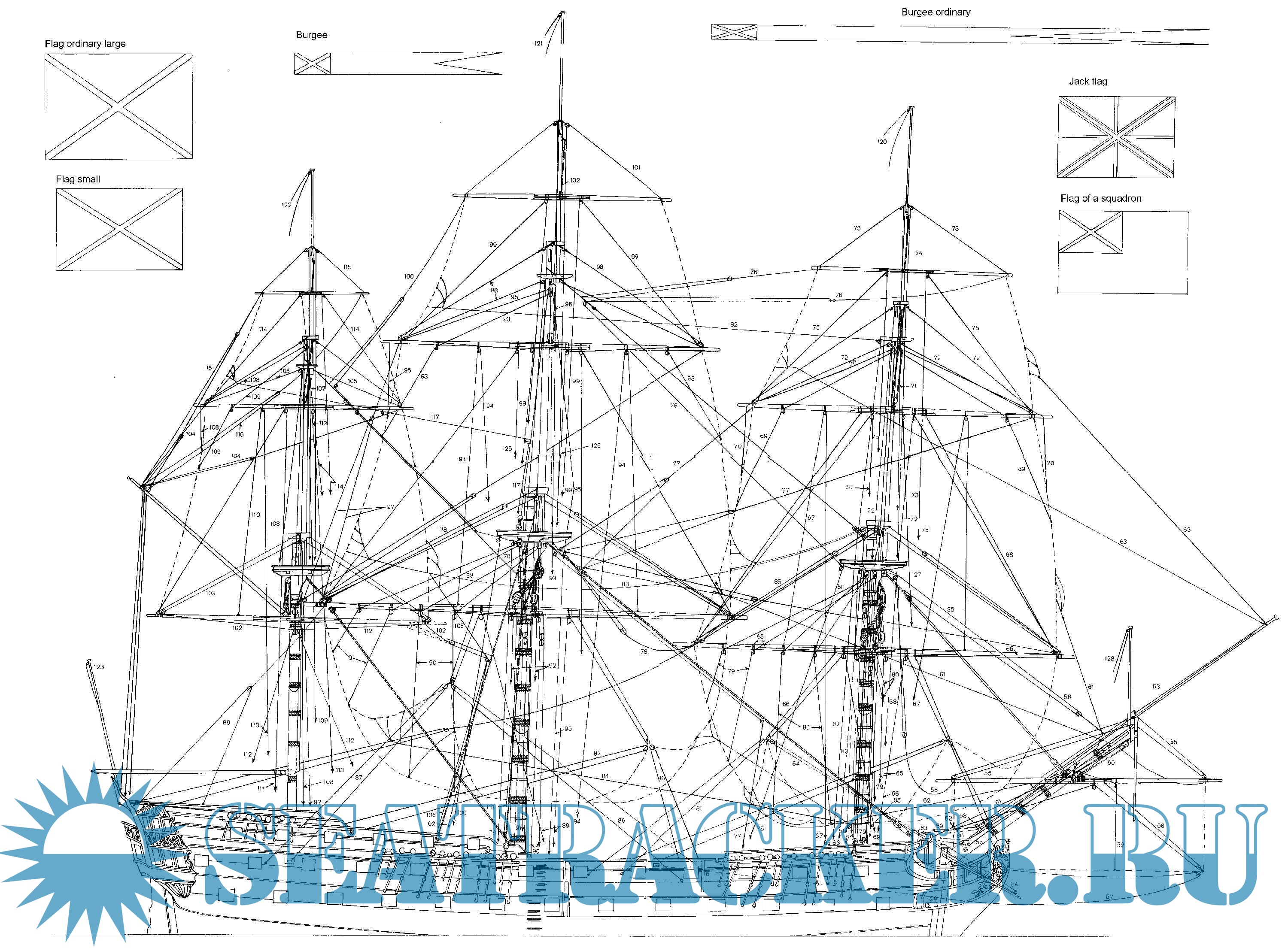 Архивные чертежи 68-пушечного парусного корабля HMS "Agincourt" 1796 год - нет данных…