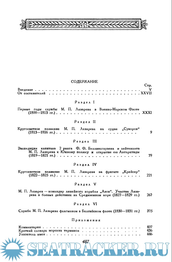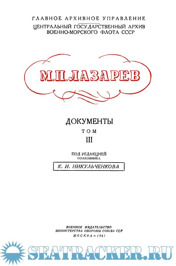 Описание: Сборник документов «М. П. Лазарев» содержит материалы о жизни и деятельности этого знаменитого русского ученого-мореплавателя и крупнейшего военно-морского деятеля. Документы освещают научную работу М. П. Лазарева в области исследования Южного Ледовитого океана и открытия Антарктиды, деятельность его по укреплению Черноморского флота, превращенного им в один из лучших парусных флотов мира, а также по созданию особой школы воспитания и обучения офицеров и матросов, которая дала русскому флоту таких замечательных флотоводцев, как Нахимов, Корнилов, Бутаков и другие.