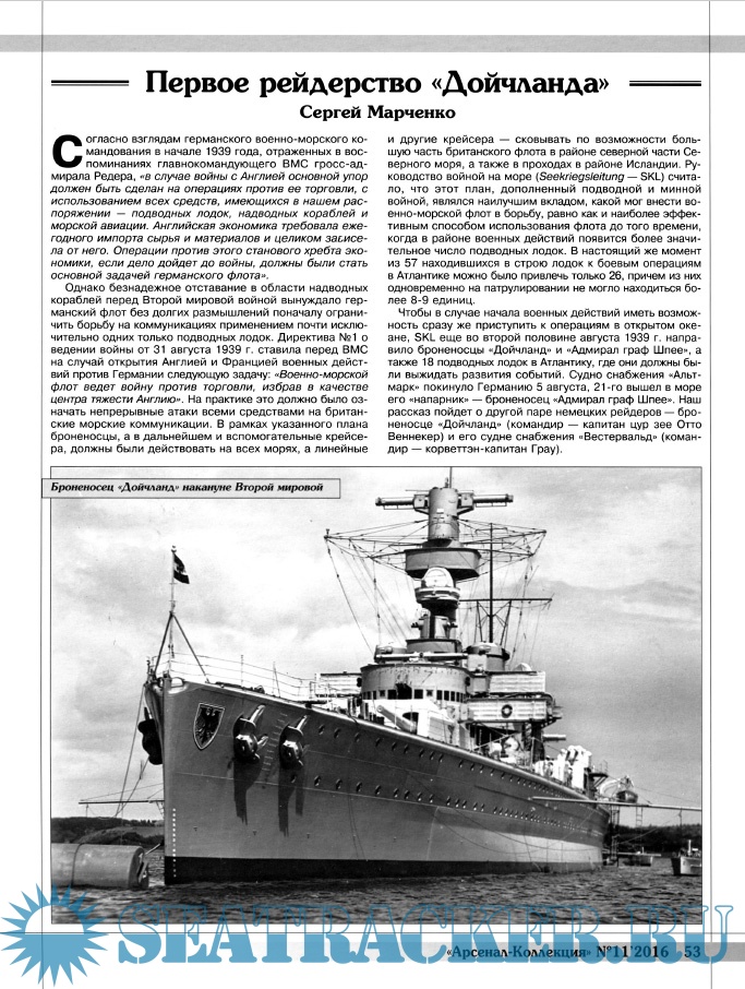 Описание: «Арсенал-Коллекция» - ежемесячный научно-популярный, военно-исторический журнал. Журнал о военной технике - кораблях, авиации, танках, а также о великих сражениях и военных операциях. История изобретения, описание самых удачных операций, побед и поражений – вот что ждет читателей на страницах издания. Красочные обзоры, схемы, фотографии точно не оставят вас равнодушными. Объем ~ 68 страницы, разбитые примерно поровну на три блока - сухопутный, авиационный и морской.