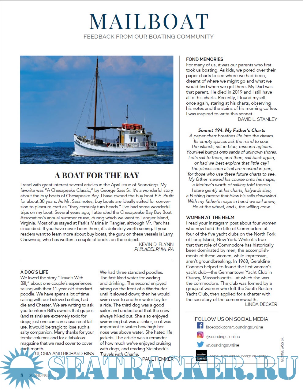 Description: Soundings is the news and feature publication for pleasure boaters.Soundings Magazine entertains and informs a loyal audience of passionate boaters. Our award-winning coverage is designed to inspire and educate our engaged owner/operator audience on the latest developments in boating, while also exploring the heritage, history and passion for our pastime that serious enthusiasts share. SOUNDINGS continues to uphold the highest standards of journalism in all our print and digital offerings.