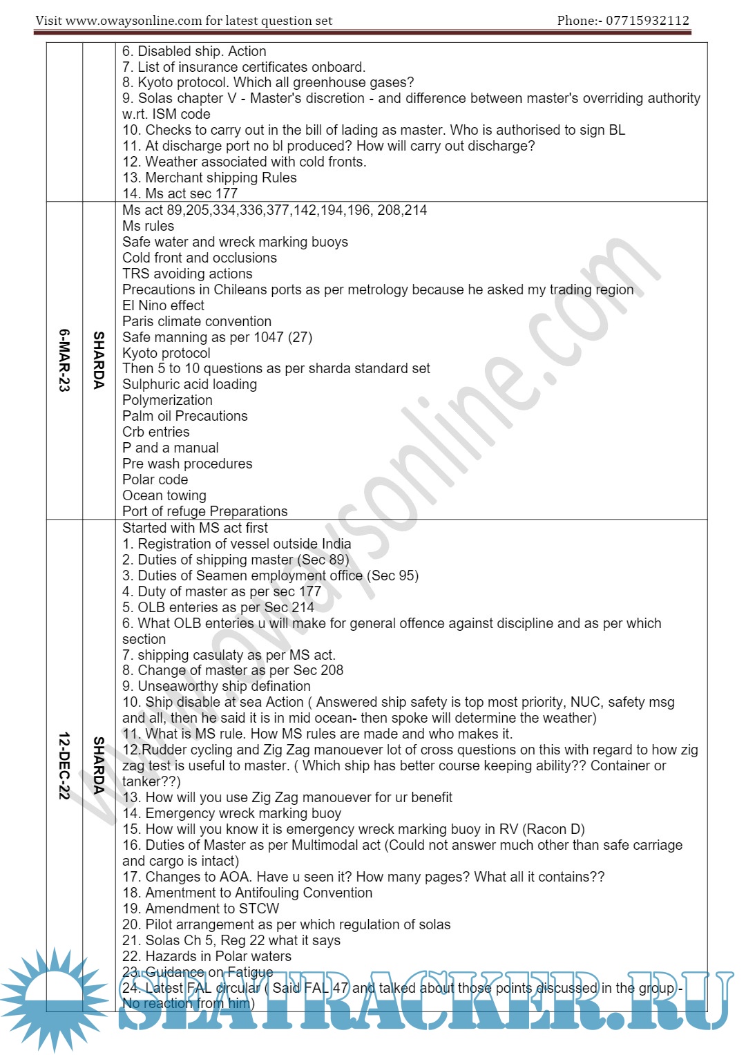 Orals Question Bank (March 2023) for ASM (Advanced Shipboard Management) / Master's Mercantile…