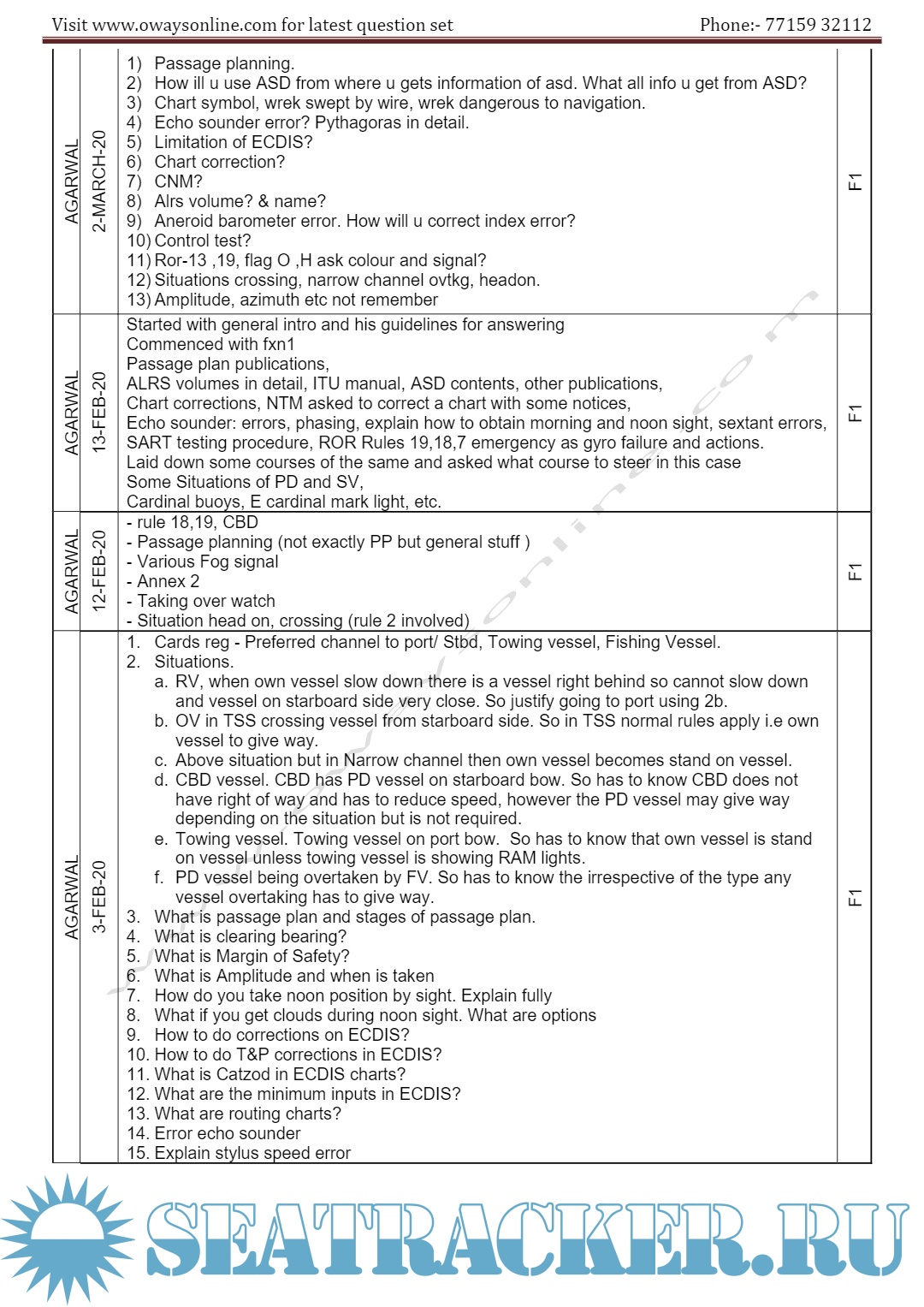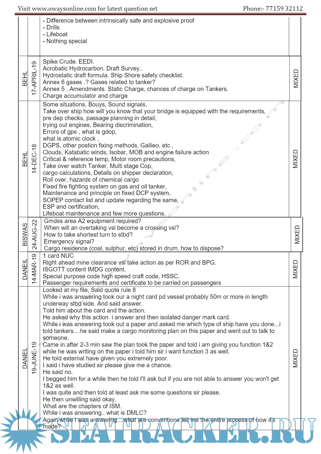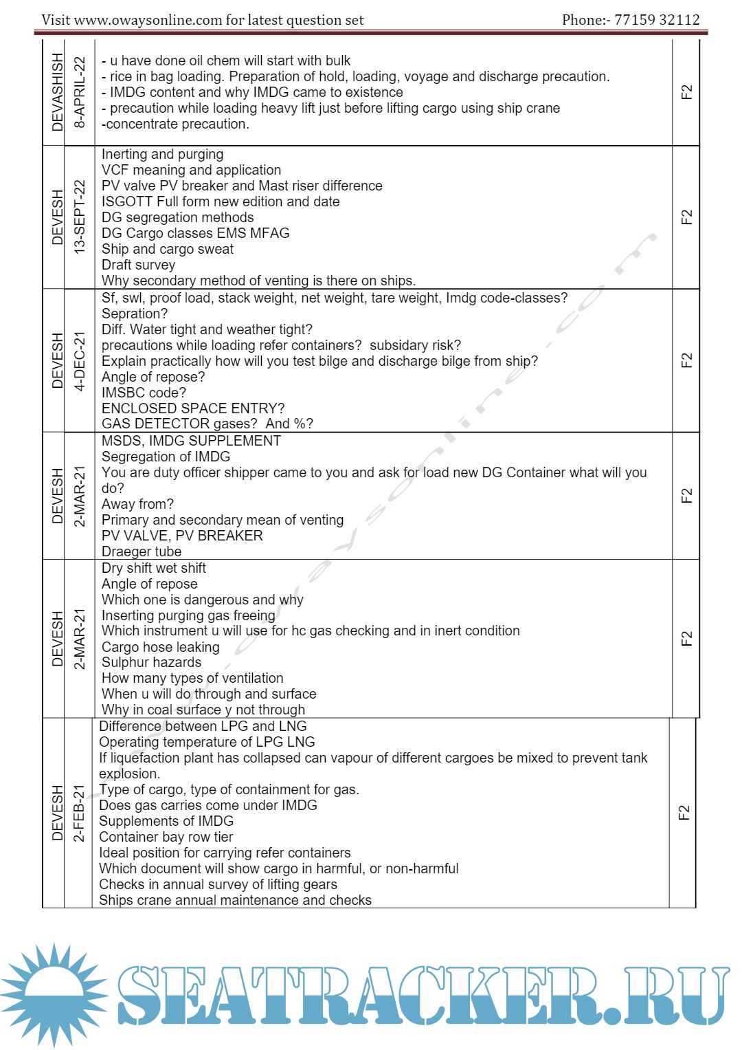Description: 2nd Mate MMD Orals Exams Surveyor Question Set Mumbai.Question set arranged in the order Functions / surveyors / Dates.