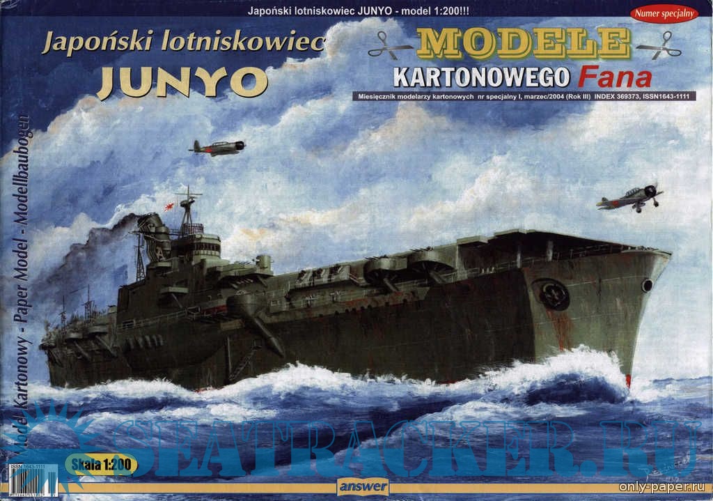 64 листа цветных выкроек и инструкций для изготовления бумажной модели японского авианосца Junyo в масштабе 1:200