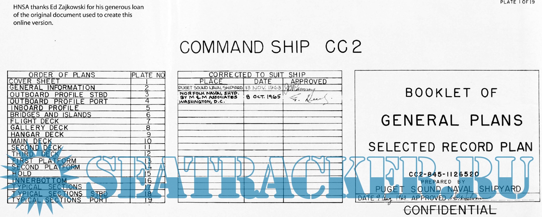 19 листов архивных чертежей авианосца США CC-2 (ex CVL-49) - USS Wright (тип Saipan) по состоянию на 1963 годСкриншоты