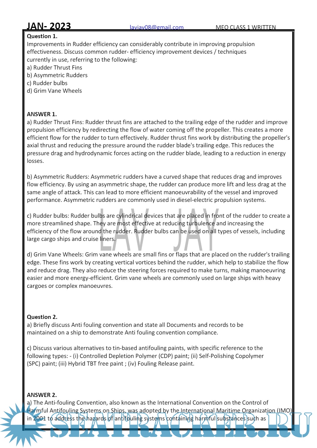 MEO Class I: Written Question and Answer (March) - Lav Jay [2023, PDF]